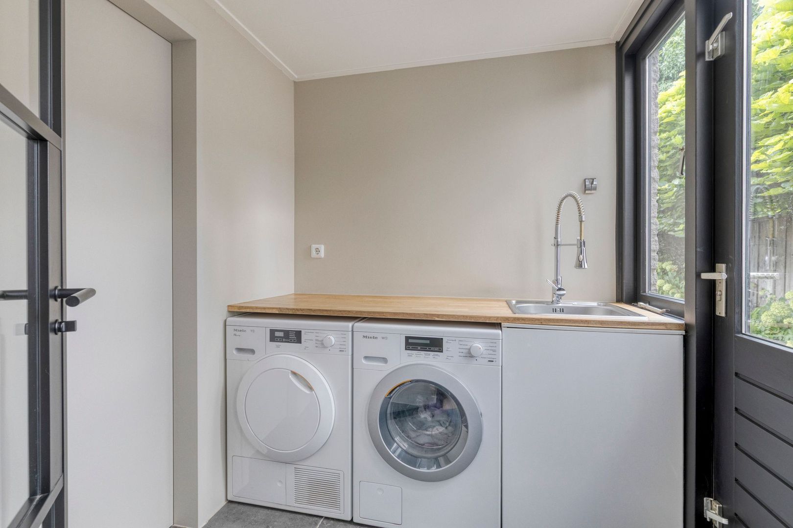-aansluitende bijkeuken met wasmachine-/drogeraansluiting;